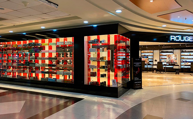 Para este tipo de marcas se trata de espacios clave para ganar posicionamiento, a pesar de que durante gran parte del 2020 se vieron obligados a estar cerrados por las restricciones ante la pandemia. Rouge posee 36 bocas, distribuidas en la Ciudad de Buenos Aires -en locales a la calle y en shoppings como el Paseo Alcorta, Alto Palermo, Distrito Arcos, entre otros-, en el conurbano bonaerense y en el interior del país, en Pinamar, Neuquén y Salta. Ver artículo Perfumerías: reabrieron los shoppings.