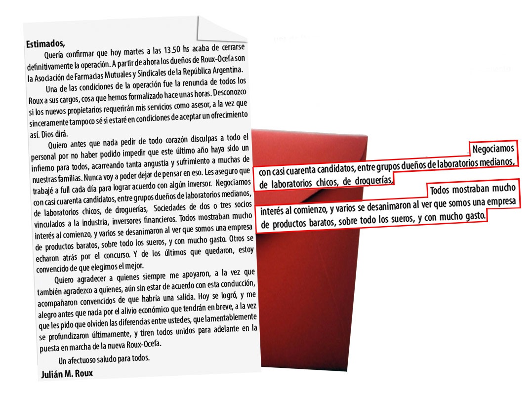 En paralelo, Julián Roux terminó una etapa en la empresa. Por eso, le envió una carta a sus colaboradores en la que subrayó y blanqueó que cerca de 40 candidatos se sentaron en su escritorio para convertirse en los nuevos accionistas. Sin embargo, la mayoría «se desanimaron al ver que somos una empresa de productos baratos, sobre todo por los sueros, y que tiene mucho gasto». Ver carta