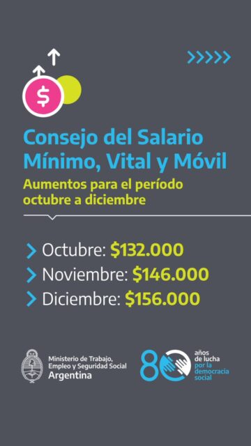 En septiembre el ingreso se había fijado en $118.000 (u$s 321,85), y ante la caída del poder adquisitivo se actualizó el monto en el último trimestre de este año. El Salario Mínimo, Vital y Móvil no solo repercute en la remuneración de los trabajadores con contratos en blanco sino que también sirve para fijar el valor de las prestaciones de muchos planes sociales. También es utilizado en el cálculo de haberes jubilatorios, salario inicial docente y juicios laborales en casos de empleos no registrados, entre otros.