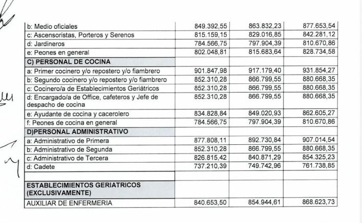 Por su parte, el personal de Atención, Cuidado e Internación Domiciliaria -743/16- también entró en esta negociación. Aquí, por ejemplo, el personal técnico de categoría A percibirá un básico de $778.418 (u$s 712,91) desde febrero. A ello se le suma $4.671 (u$s 4,2) de valor prestacional.