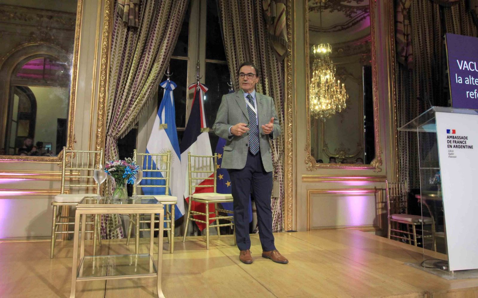 La bienvenida a la reunión, que contó con la presencia de Pharmabiz, la dio Céline Giusti, quien actúa como Primera Consejera de la embajada. Posteriormente tomó la palabra el gerente general de Sanofi Vacunas para Cono Sur, Serge Montero. Desde el escenario, Montero subrayó que Sanofi lleva más de 120 años de trayectoria en investigación, desarrollo y producción de vacunas y que cuenta con vacunas para todas las etapas de la vida. Las mismas dijo, protegen contra más de 15 enfermedades infecciosas. Montero puntualizó en el mismo sentido, que Sanofi muestra profundas raíces en el ámbito de las vacunas.