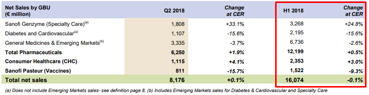 La francesa Sanofi hizo públicos sus resultados financieros para la primera mitad del 2018. Ver press release