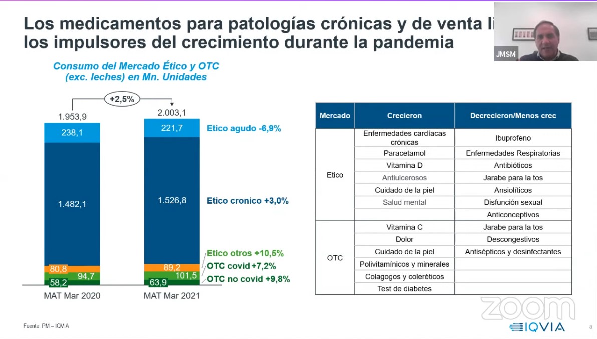 Por otro lado, Santa María señaló que si bien en los últimos años las ventas en el canal de farmacias local registraban una tendencia decreciente en volúmenes, tanto para los recetados como para los OTC, desde la última parte del 2020 y en este 2021, la demanda empezó a dinamizarse con crecimientos casi de doble dígito. «Hay una recuperación y, sin dudas, el PAMI es un motor del incremento en cantidades«, interpretó Santa María.