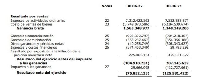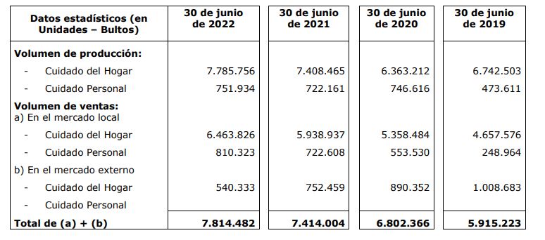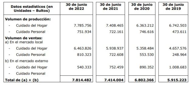 La compañía salteña, que se dedica principalmente a la fabricación y comercialización de artículos de limpieza e higiene bajo las marcas X5, Jardín, Bora, Borita, Alberto VO5, Véritas, Fármaco y Antiall, registró en el citado período una facturación de $7.312,4 millones (u$s 48,9 millones). Ver Reseña Informativa.