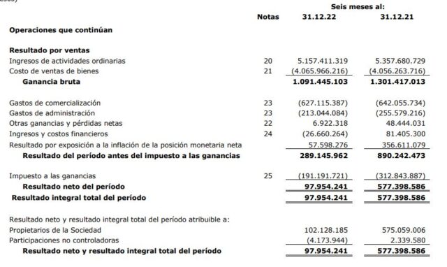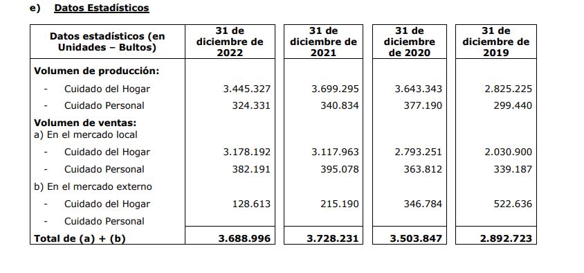 La compañía salteña, que se dedica principalmente a la fabricación y comercialización de artículos de limpieza e higiene bajo las marcas X5, Jardín, Bora, Borita, Alberto VO5, Véritas, Fármaco y Antiall, registró en el citado período una facturación de 5.157,4 millones (u$s 24,6 millones). Ver Reseña Informativa.