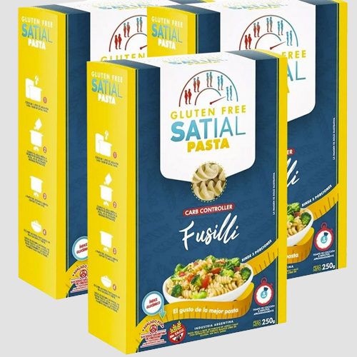 El polvo Satial suma nuevas presentaciones. Ahora se lanzó su versión Pasta, fusillis gluten free que se comercializan en dietéticas y en algunas farmacias.