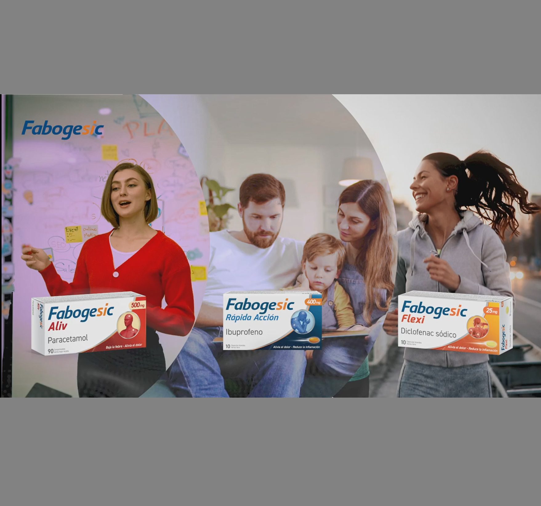 La publicidad pone el foco en todo el portfolio de la marca: Fabogesic Aliv, a base de paracetamol; Fabogesic niños; Fabogesic Rápida Acción, ambos con ibuprofeno; y Fabogesic Flexi, formulado con diclofenac sódico. Allí se promete un «alivio para todo tipo de dolor«. Por su parte, en el segmento compite con Actron, de la alemana Bayer; Ibupirac, de la norteamericana Pfizer; IbuEvanol, de la británica Haleon, y otras etiquetas.