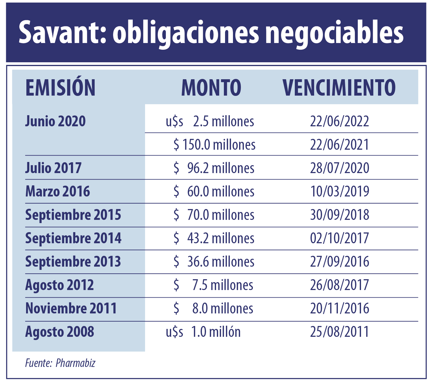 El laboratorio nacional Savant inició la colocación de una dupla de Obligaciones Negociables. Una Serie VI Clase L por $150 millones (u$s 2 millones) y otra Serie VI Clase M por u$s 2.5 millones. Ambas podrán ampliarse y tienen vencimiento en 2021 y 2022 respectivamente.