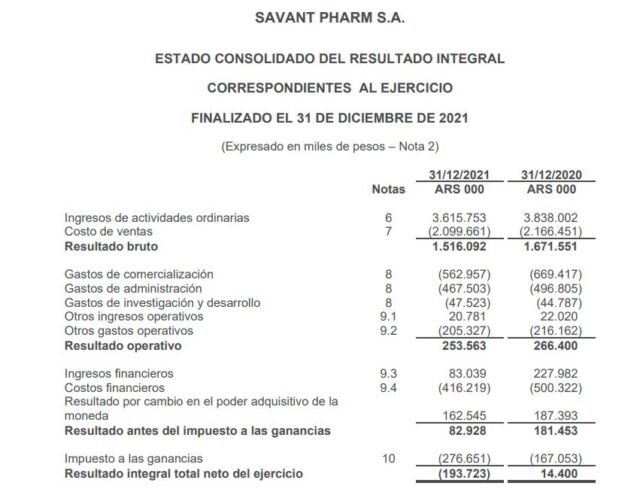 El nacional Savant, uno de los contados laboratorios que en las últimas dos décadas recurrió al mercado local para financiar capital de trabajo, presentó sus estados contables correspondientes a su ejercicio económico 2021.