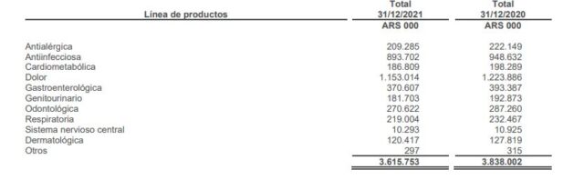 Durante el año pasado, sus ventas medidas en moneda constante, retrocedieron un -5,8% a $3.615,8 millones (u$s 31,5 millones), frente a los ingresos por $3.838,0 (u$s 33,4 millones) que obtuvo en su año fiscal 2020. Ver Balance Anual.