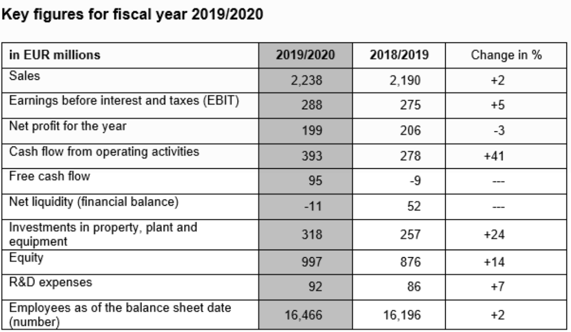 La compañía germana de vidrios especiales Schott reportó un incremento del 2.2% en ingresos durante su año fiscal 2019/20, que concluyó el pasado 30 de septiembre. En dicho período las ventas ascendieron a € 2.238 millones, frente a los € 2.190 millones del ejercicio anterior. Ver press release