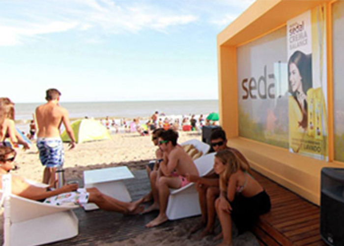 Unilever montó su peluquería Sedal en Mar del Plata. Con el amarillo como protagonista un equipo de promotoras recorre las playas entregando samplers mientras que el staff de estilístas peinan al ritmo de las olas.