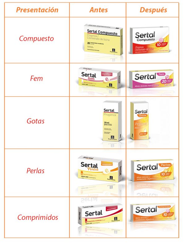 De cara al segundo semestre del año, Roemmers presenta una renovación estética de su línea de antiespasmódicos Sertal. La empresa tomó la decisión de dejar atrás el amarillo, el color emblema para su portafolio de prescripción. Las cajitas estarán en el punto de venta luego de dar por terminado el stock vigente.