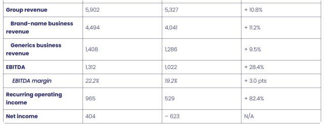 «Este desempeño fue impulsado particularmente por un crecimiento del 12,6% en volumen de ventas mundial de medicamentos de marca y genéricos en comparación con 2022/2023, a pesar de un impacto cambiario desfavorable del -3,5% (€-185 millones en 2023/2024 frente a €-132 millones del año anterior)», dijo la compañía en su informe de resultados.