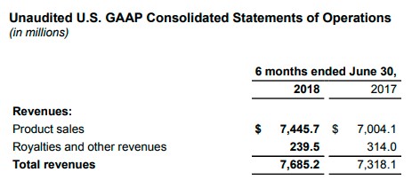 La multi dijo que en los primeros seis meses del año facturó u$s 7.685 millones, lo que significó un avance del 5% frente al mismo período del 2017. Ver press release.