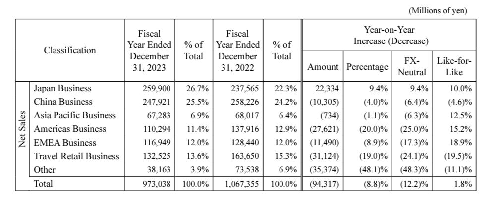 En plena temporada alta de presentación de balances anuales, la multi nipona de cosmética Shiseido reportó sus principales cifras de desempeño correspondientes a su año fiscal 2023. Sus ingresos declinaron un -8,8% a 973.038 billones de yenes (u$s 6.532,7 millones). Ver Press Release