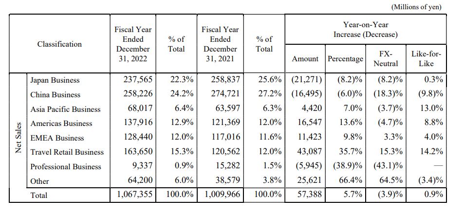 En plena temporada alta de presentación de balances anuales, la multi nipona de cosmética Shiseido reportó sus principales cifras de desempeño correspondientes a su año fiscal 2022. Sus ingresos crecieron un 5,7% a 1.067,4 trillones (u$s 8.134,5). Ver Press Release.