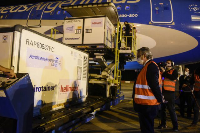 El presidente Alberto Fernández supervisó la llegada de 1 millón de dosis de Sinopharm a bordo del vuelo AR1051 de Aerolíneas Argentinas que aterrizó a las 19.13, proveniente de Pekín. El vuelo completó las 2 millones de vacunas recibidas esta semana.
