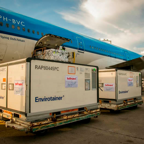 Fue mediante la empresa Air France KLM que utilizó un Boeing 777-300W, el que tiene mayor espacio para carga, para poder asegurar el embarque de las vacunas. Las 96.000 dosis fueron despachadas en dos contenedores Envirotainers RAP E1 de temperatura controlada. El rango de temperatura es +2 +8°C.