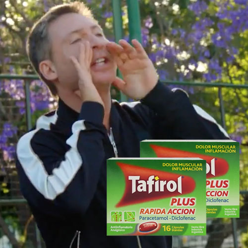 Mientras que en la pantalla local el que resaltaba era el personaje encarnado por Adrián Suar para la saga de comerciales que la mexicana Genomma craneó para su analgésico Tafirol.