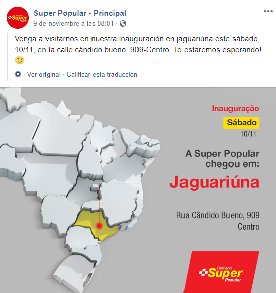 La cadena de farmacias Super Popular de Brasil inauguró un nuevo local en el municipio de Jaguariúna, en el Estado de San Pablo. Así el retailer ya suma más de 30 bocas en dicho país.