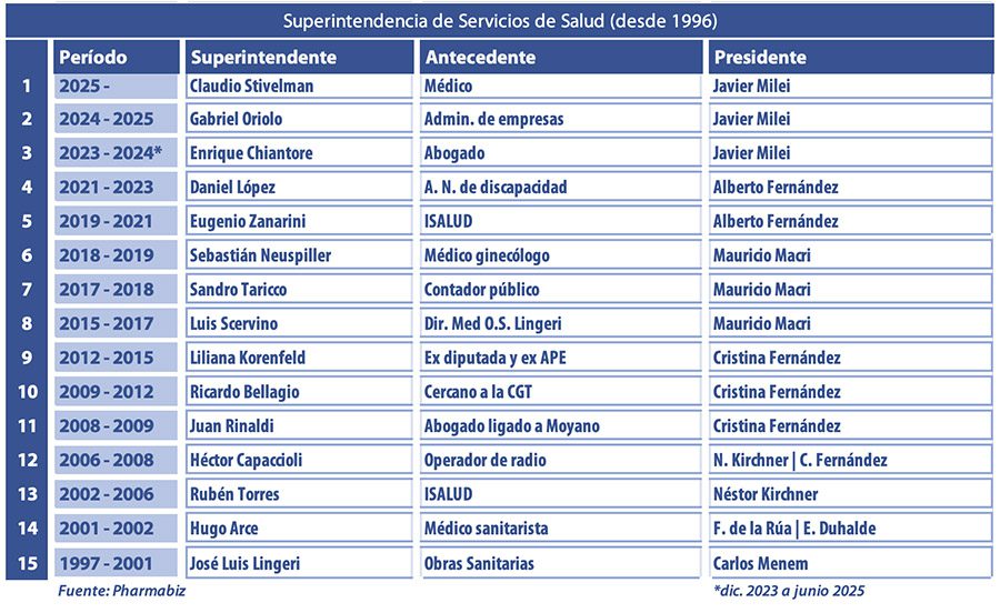 Tras la salida de Gabriel Oriolo por motivos personales, el gobierno de Javier Milei promovió a Claudio Stivelman como nuevo superintendente de Servicios de Salud. El funcionario venía desempeñándose como gerente general, cargo que ahora ocupará Juan José Picón.