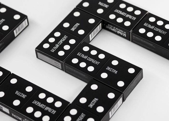 Se trata de una línea de suplementos dietarios a base de carbón. El producto se presenta en un packaging negro que tiene impreso lunares de color blanco al igual que las piezas del dominó.