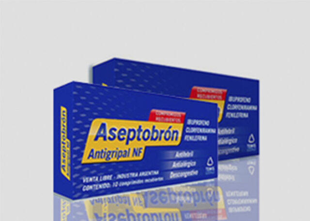 El laboratorio nacional Temis Lostaló lanzó Aseptobrón Antigripal NF, basado la combinación de tres principios activos: ibuprofeno, clorfeniramina y fenilefrina.