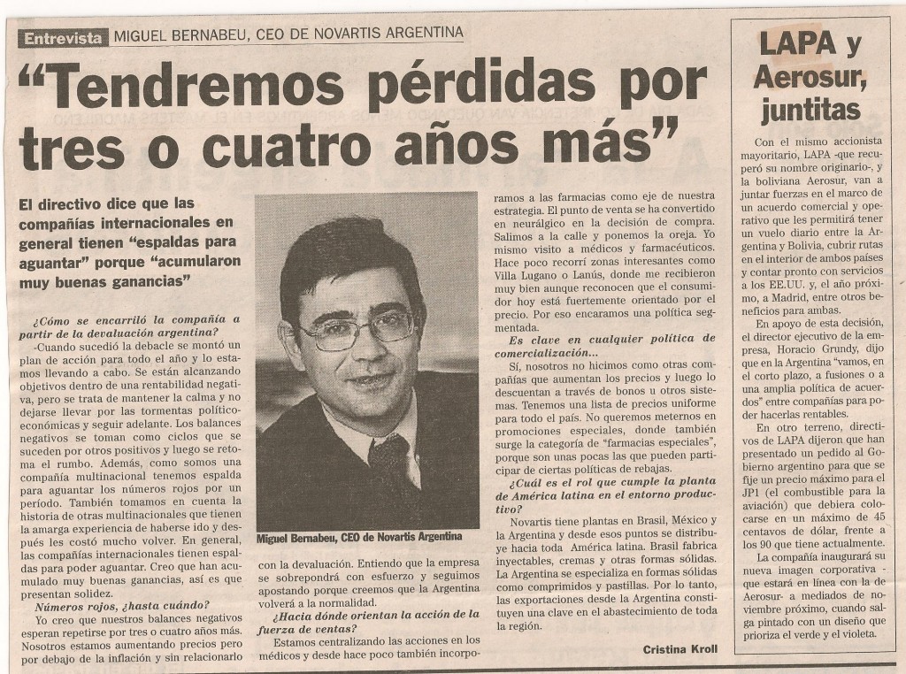 -Cuando sucedió la debacle se montó un plan de acción para todo el año y lo estamos llevando a cabo. Se están alcanzando objetivos dentro de una rentabilidad negativa, pero se trata de mantener la calma y no dejarse llevar por las tormentas político-económicas y seguir adelante. Los balances negativos se toman como ciclos que se suceden por otros positivos y luego se retoma el rumbo. Además, como somos una compañía multinacional tenemos espalda para aguantar los números rojos por un período. También tomamos en cuenta la historia de otras multinacionales que tienen la amarga experiencia de haberse ido y después les costó mucho volver. En general, las compañías internacionales tienen espaldas para poder aguantar. Creo que han acumulado muy buenas ganancias, así es que presentan solidez.