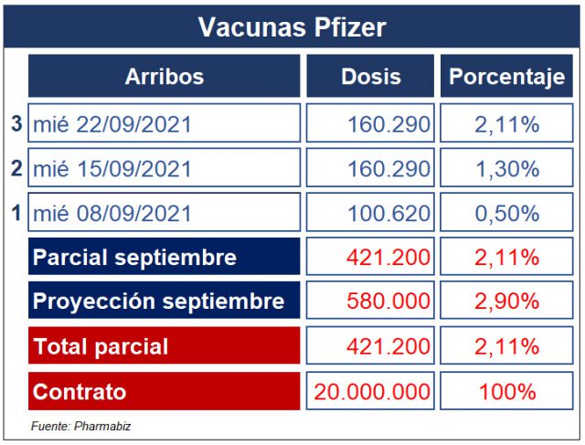 Durante el mes de septiembre llegarán un total de 580 mil dosis del laboratorio estadounidense.