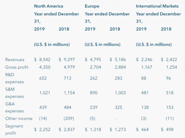 Según el informe, durante el 2019 la firma tuvo ventas por u$s 16.887 millones, lo que da una caída del 8% en la comparación con el año anterior. Es que la compañía no está en su mejor momento, luego de encarar un recorte en toda su operación que permitió recortar costos por u$s 3.000 millones, algo que también impactó en la Argentina.