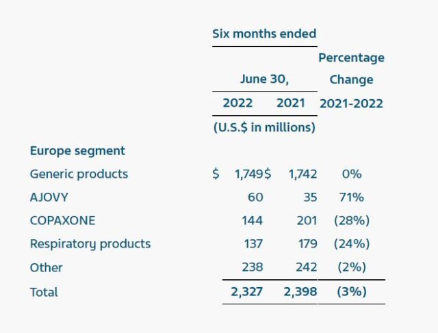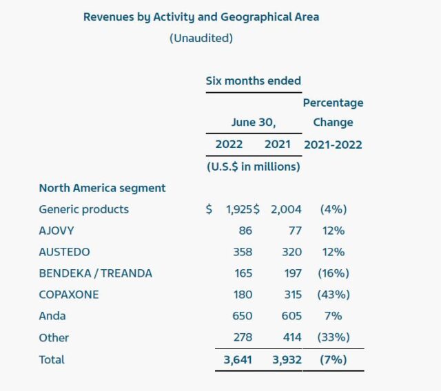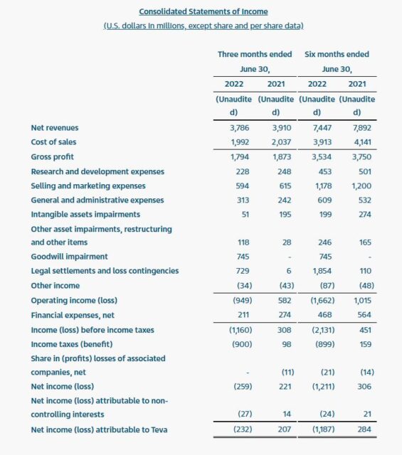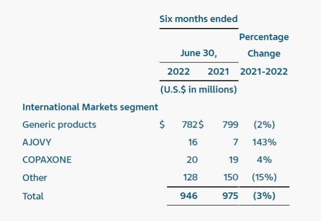 A la israelí Teva aún le cuesta hacer pie y detener la desaceleración en su facturación global que presenta desde el 2019. En la primera mitad de este 2022, sus ingresos cayeron un -5,6% a u$s 7.447 millones, desde los u$s 7.892 de igual lapso del año anterior. Ver Press Release.