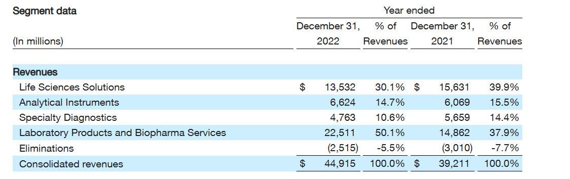 En un análisis por líneas de negocio, Productos de Laboratorio y Servicios Biofarmacéuticos generó el 50,1% de los ingresos globales al entregar u$s 22.511 millones, con un crecimiento del 51,5% en relación al ejercicio anterior.