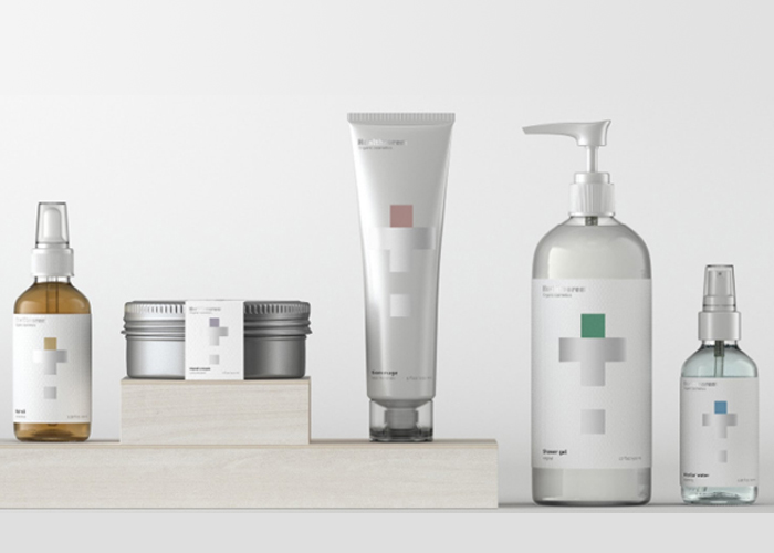 Se trata de la marca rusa Healtheorem, perteneciente a la empresa Soyuz. Con estampas de cruces que hacen anclaje en el segmento de farma, la firma le imprimió un carácter «higiénico» a sus cosméticos orgánicos.