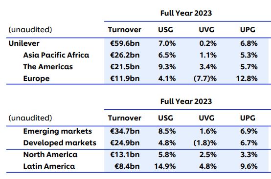 En octubre, «establecimos un Plan de Acción para el Crecimiento centrado en tres prioridades: lograr un crecimiento de mayor calidad, intensificar productividad y simplicidad, y adoptando un fuerte enfoque en el desempeño«, detalló el director ejecutivo. Por otro lado, la compañía dijo que espera que el crecimiento de las ventas subyacentes (USG) para 2024 esté «dentro de nuestro rango plurianual del 3% al 5%, con más equilibrio entre volumen y precio«, precisó.