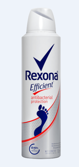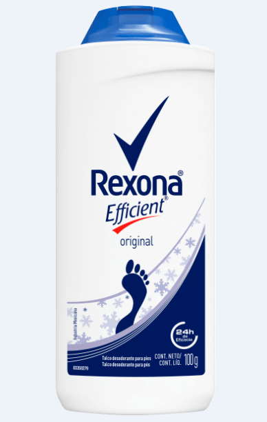 Tanto el talco «original» de 100 gr., el antibacterial de 200 gr., y los aerosoles de 153ml. de Rexona Efficient compiten en el mercado con las marcas Curitas Foot Defense, de la alemana Beiersdorf; y con Veritas, de Santiago Saenz; entre otras líneas.