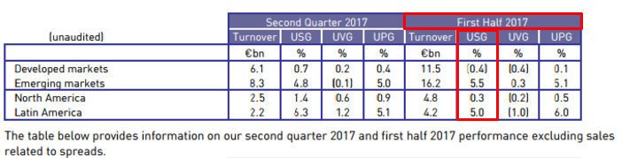 La multi informó un incremento del 3% en ventas en el período. Dicha cifra excluye los cambios que resulten de adquisiciones y otros. La compañía registró durante la primera mitad del 2017 una facturación total de €27.7 mil millones, y un aumento del 22% en rentabilidad neta.