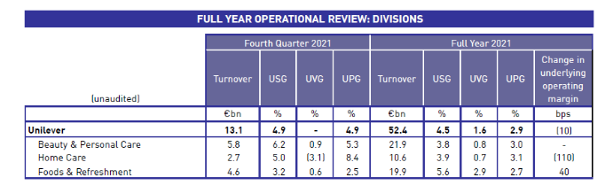 Unilever publicó sus resultados anuales el jue 10/02 a las 11 am EST // 13 pm de Argentina.