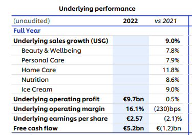 La gigante de consumo masivo Unilever dio a conocer hoy, jueves 9 de febrero, su reporte de resultados correspondiente al 2022. El año pasado la compañía facturó € 60.1 mil millones, un 9% más que en el 2021. Ver press release.