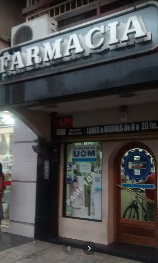 La firma, en realidad, remodernizó y relocalizó a pocos metros de distancia a la histórica «Farmacia UOMAX Del Puente», la que estaba ubicada sobre Juan Domingo Perón al 3212, y ahora pasó a atender a la altura 3255. Ver fachada de antigua farmacia