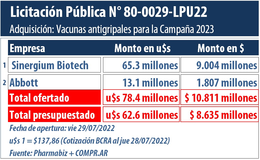 Vacunas antigripales en foco: compra 2023. #Vacunas #Antigripales #Licitación #SinergiumBiotech #Viraflu #Fluxvir #ComprasPúblicas #Farma #Pharmabiz