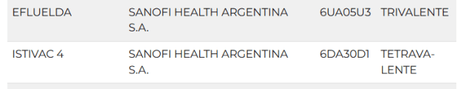 En paralelo, se incorporaron lotes al canal privado. Se trata de uno de Istivac, la tetravalente, y uno de Efluelda, trivalente, ambas de la francesa Sanofi. En este canal también figuran cinco lotes de Influvac de Abbott, y un lote de Influvac Tetra, de la norteamericana.
