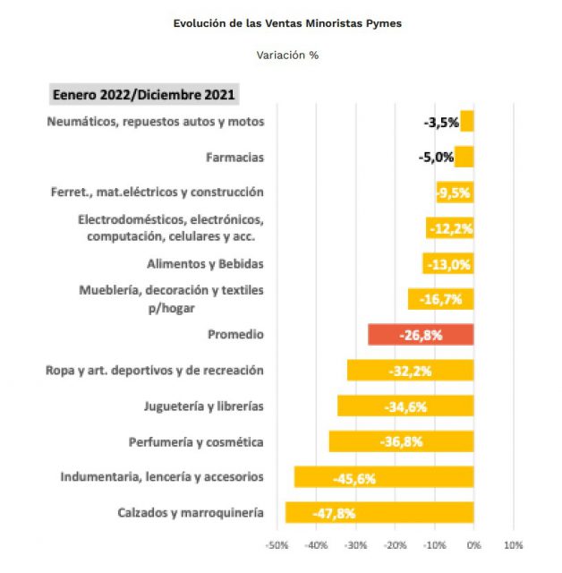 Las ventas minoristas PyMES se desplomaron un -26,8% frente a diciembre del año pasado. En ese contexto, las farmacias vieron caer sus tickets un -5%.