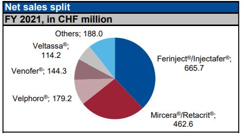 El año pasado, Ferinject / Injectafer, los tratamientos para la anemia que forman parte del portfolio de Deficiencia de Hierro, mantuvieron su status de blockbusters. En conjunto, registraron un crecimiento del 20,1% a CHF 665,7 millones (u$s 724,5 millones).