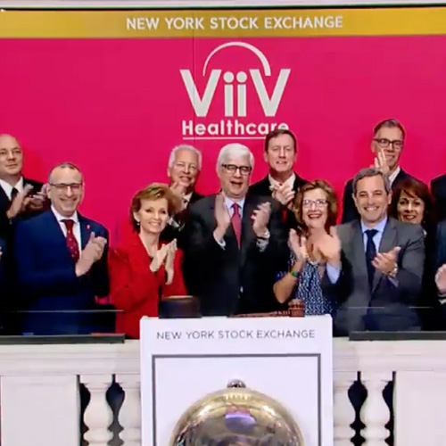 La multi ViiV Healthcare, especializada en HIV se subió al estrado de la NYSE. La empresa tocó la campana de la bolsa de valores de Nueva York con motivo de la celebración de su década de vida.