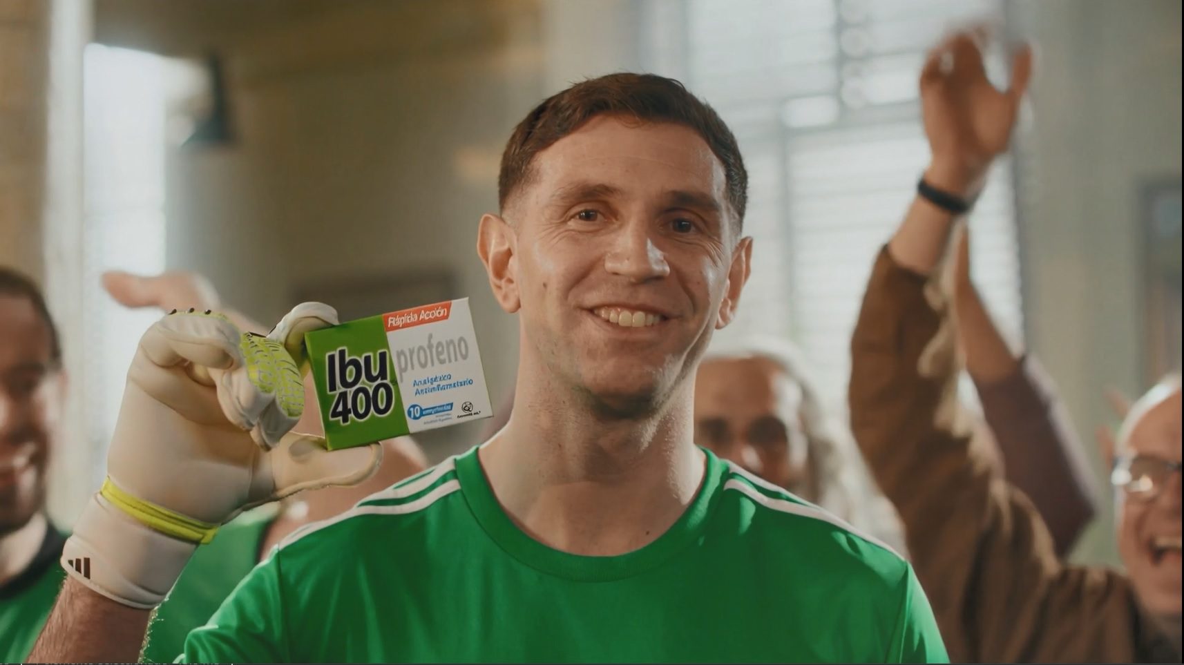 El Dibu Martínez vuelve a encabezar la campaña publicitaria del analgésico Ibu 400, de los mexicanos de Genomma. Y esta vez, el arquero de la selección argentina llega con una hinchada que lo acompaña al ritmo de «Dibu 400», replicando el juego de palabras del spot original. Ver Genomma con el Dibu