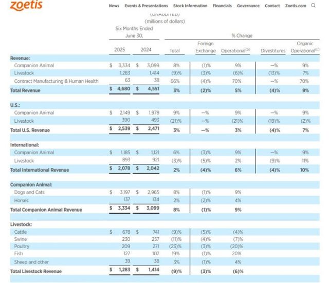 Hoy, martes 5 de agosto, la norteamericana Zoetis, la compañía que surgió de un spin off de Pfizer, dio a conocer su balance de resultados semestrales. En esta primera mitad del año, la empresa aumentó sus ingresos un 3% por un total de u$s 4.680 millones. Ver Press Release