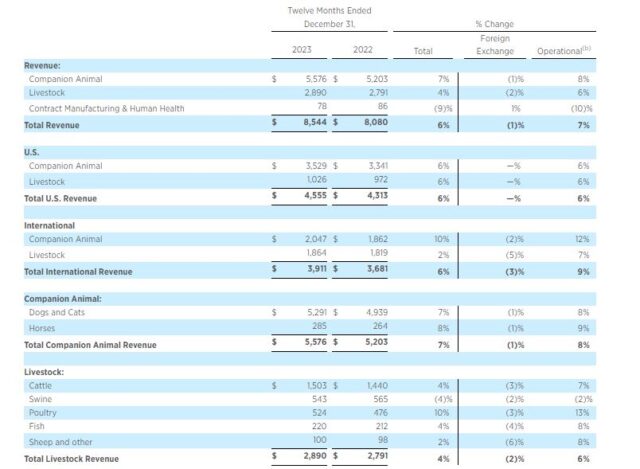 La firma norteamericana dio a conocer su balance de resultados anuales hoy, martes 13 de febrero. Según el documento el negocio que se destacó fue el de Animales de compañía, con ventas por u$s 5.576 millones y una variación positiva del 7%. Ver press release