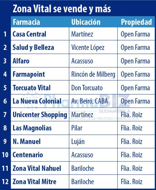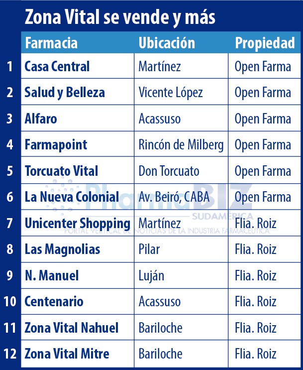 Según pudo saber Pharmabiz, la cadena de farmacias Zona Vital fundada por José Luis «Tito» Roiz, y referente en el conurbano norte, se desprendió de la mitad de sus puntos de venta. Este medio pudo chequear que los locales más rentables y con mejor desempeño comercial quedaron bajo el management de la familia Pardo dueña de la cadena de farmacias OpenFarma, que tiene en la actualidad ocho bocas.